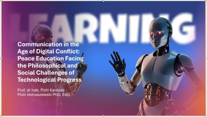 The plenary continued with Piotr JEDNASZEWSKI, PhD, EdD (St. Mary’s Institute, Dublin, Ireland), who presented «Communication in the Era of Digital Conflicts and the Challenges of Peace Education».